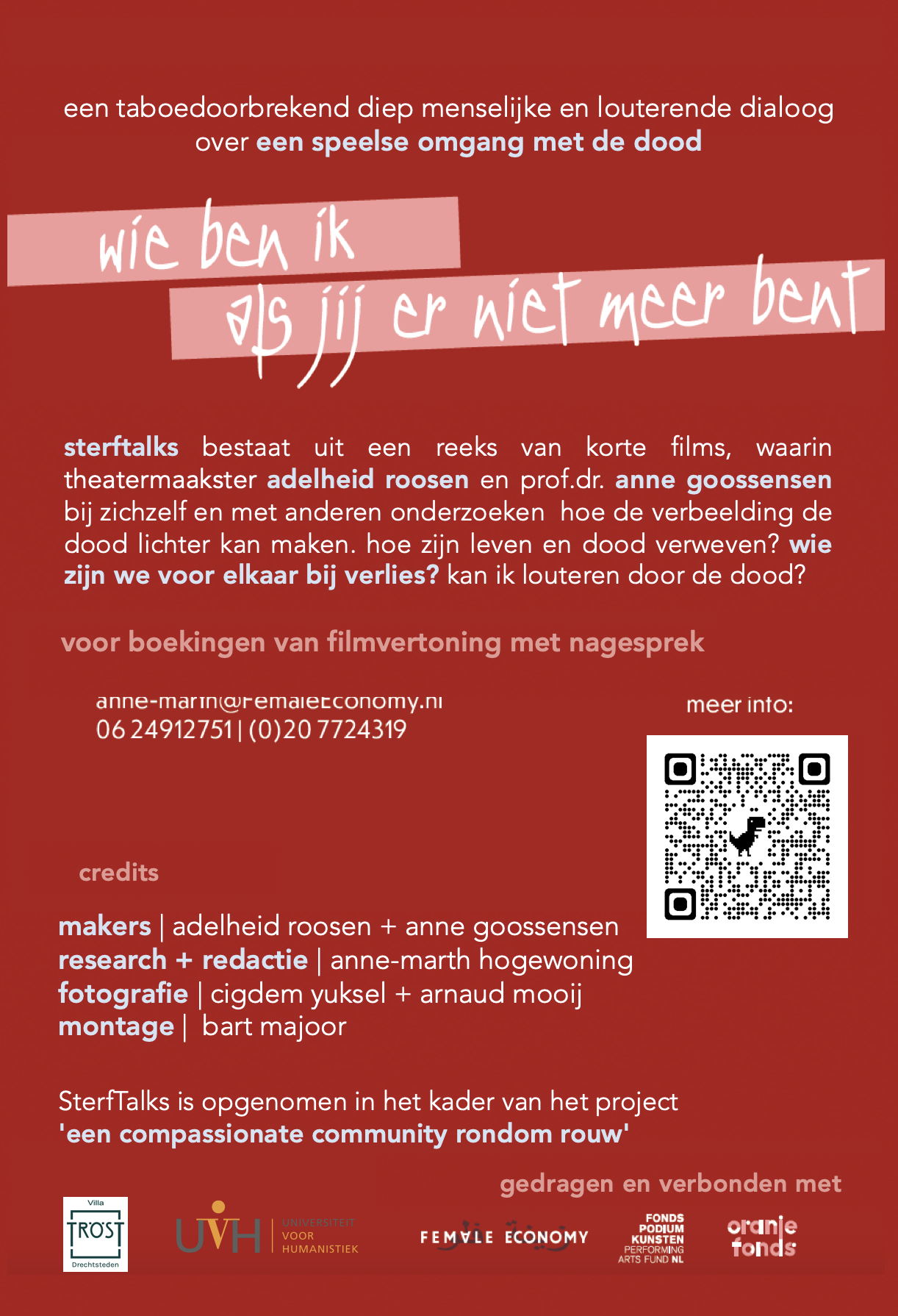 Wie kent een theatergezelschap of artiest die rond het thema levend verlies en/of rouw met muziek, theater of improvisatie onze themabijeenkomst voor zorgprofessionals op 12 oktober op een inspirerende manier kan afsluiten?